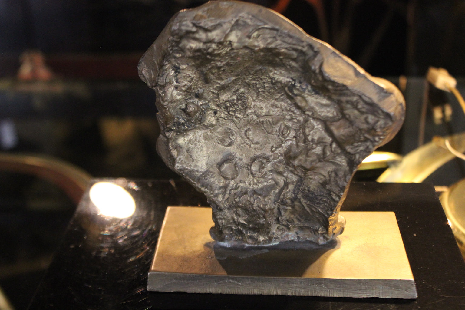 Scultura in bronzo risalente agli Anni '70, attribuita all'artista italiano Vincenzo Eulissi. Il pezzo raffigura una testa in stile astratto e frammentato, caratterizzata da una superficie ruvida e da una ricca patina scura con accenti metallici.